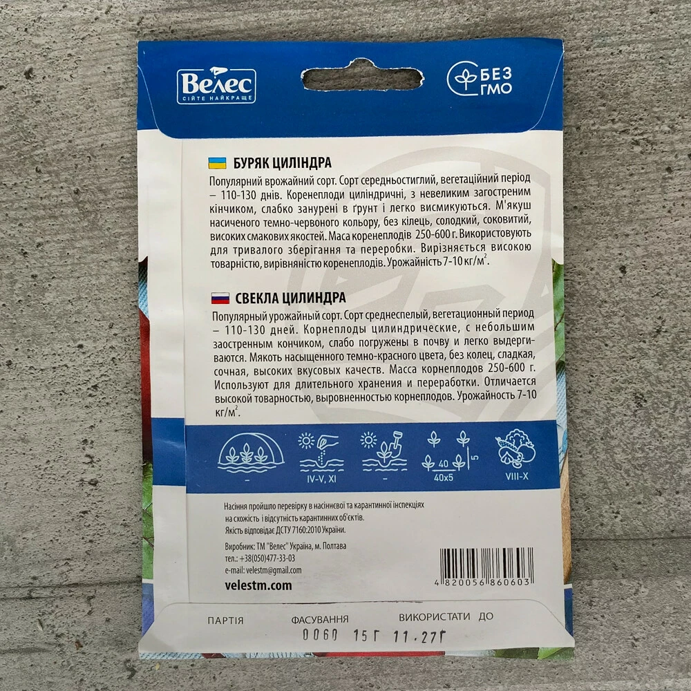 110-130 днів. Коренеплоди циліндричні з трохи загостреним кінчиком,