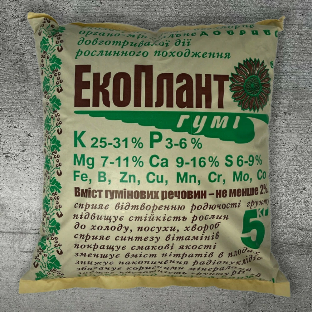 ЕкоПлант-Гумі – екологічно чисте безхлорне органо-мінеральне добриво довготривалої дії рослинного походження, яке сприяє відновленню родючості ґрунту.