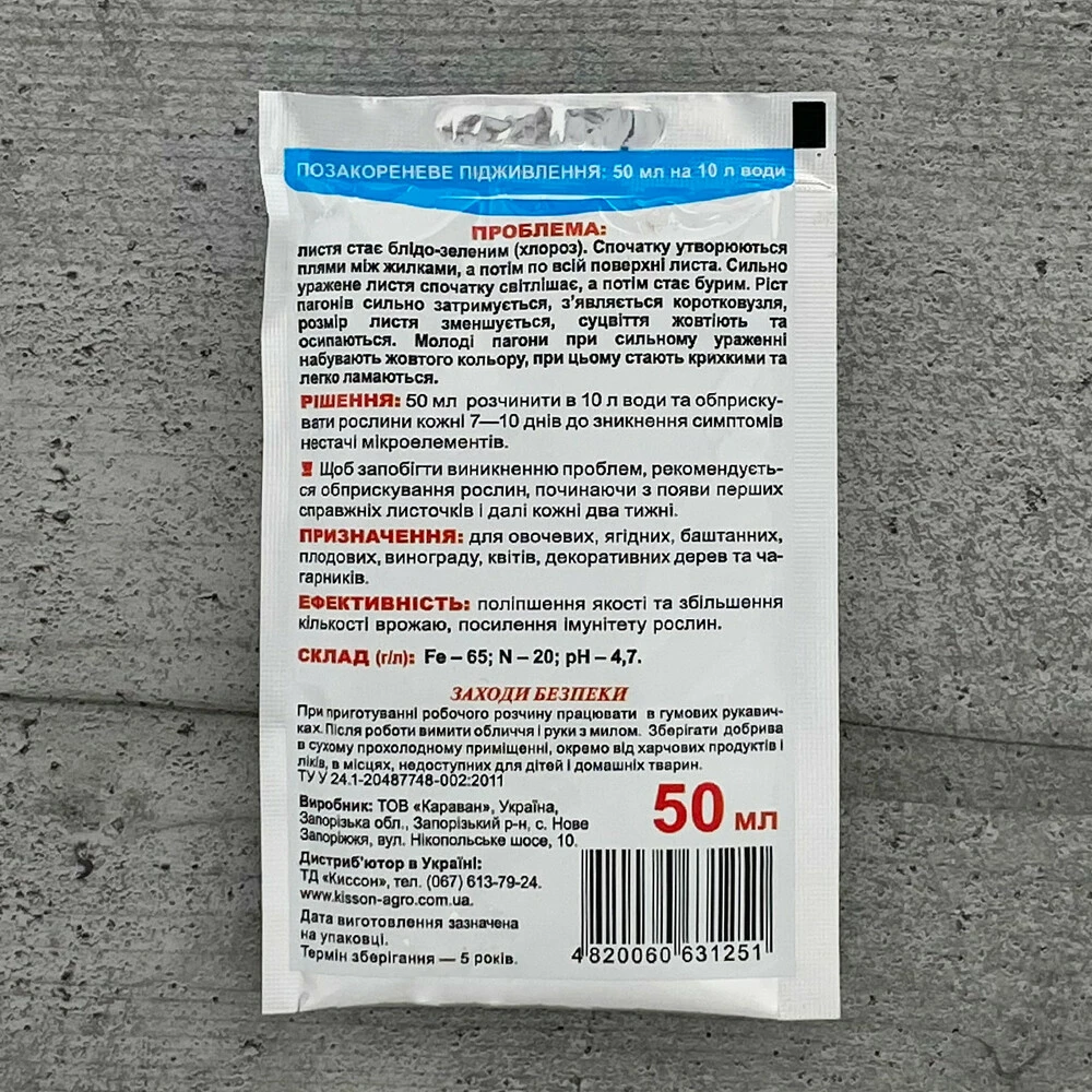 видів рослин при нестачі заліза. Дане добриво покращує процеси