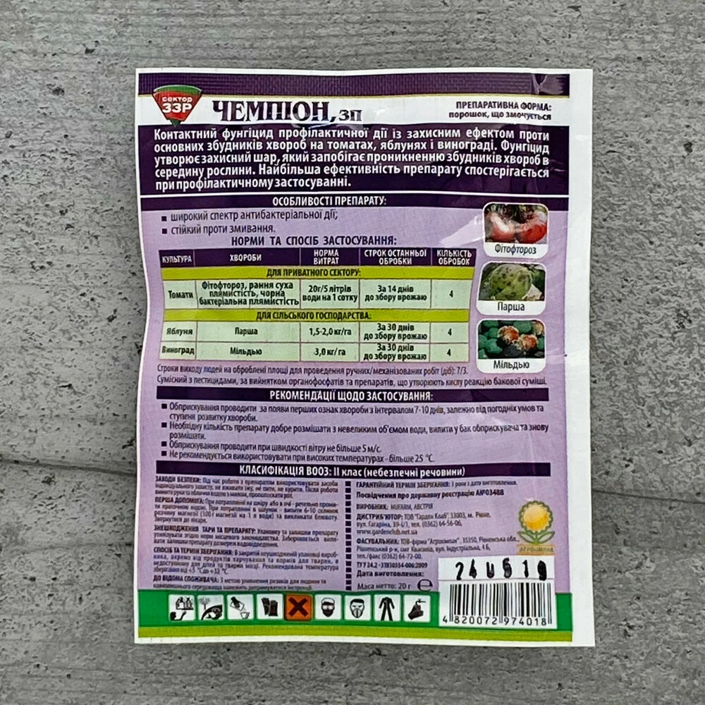 рослинах. Чемпіон сумісний з пестицидами, за винятком препаратів,