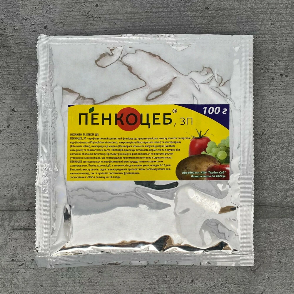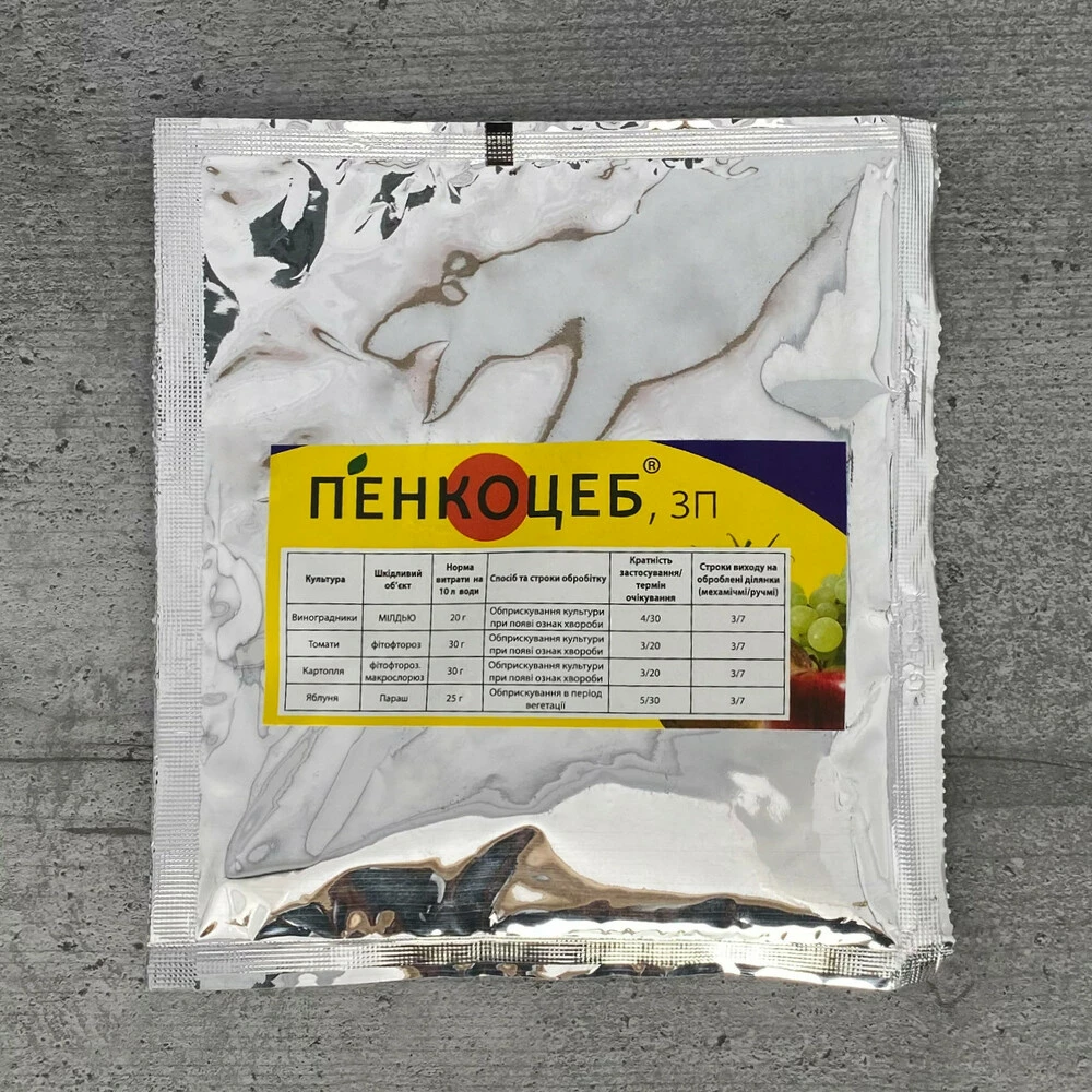 Пенкоцеб – профілактичний контактний фунгіцид що призначений для захисту томатів та картоплі від фітофторозу , макроспоріозу та альтернаріозу,винограду від мілдью та яблуні від парші та плямистостей листя. Пенкоцеб пригнічує активність ферментів та порушує ріст клітинної оболонки патогенну. Препарат рівномірно розподіляється по поверхні рослин утворюючи захисний шар, що перешкоджає проникненню патогенна в середину листа.