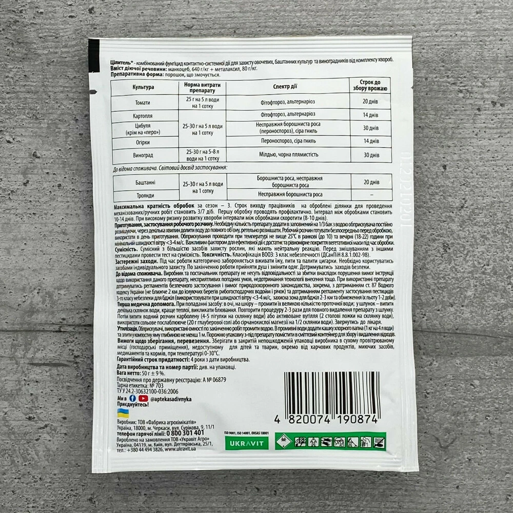 Діюча речовина: Манкоцеб, 640 г/кг + Металаксил, 80 г/кг