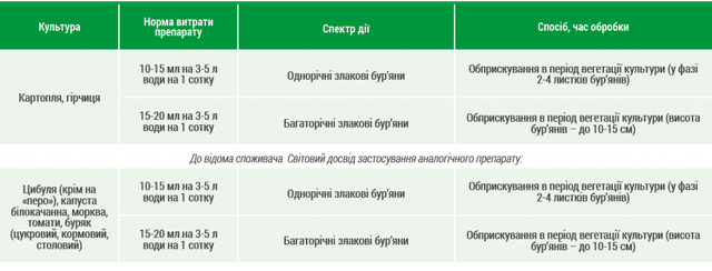 препарату. Обприскування однорічних бур’янів проводиться у фазі 2-4