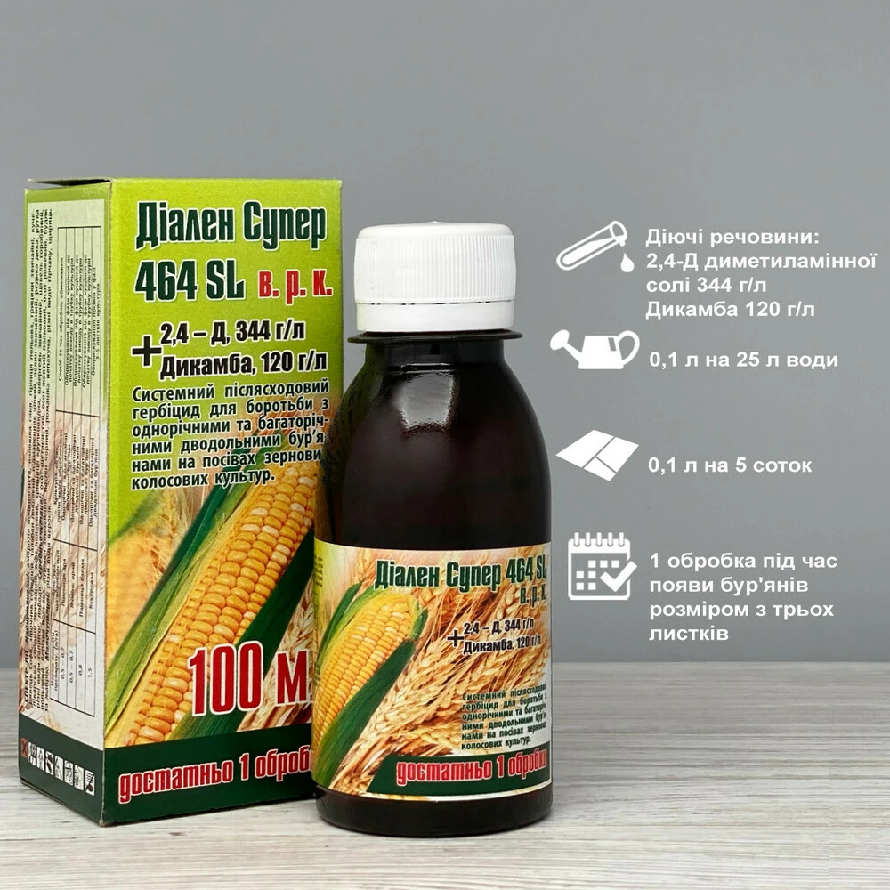 2,4-Д диметиламінної солі 344 г/л, дикамба 120 г/л