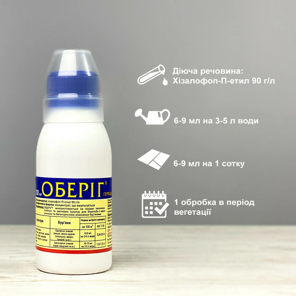 Оберіг - використовується на посівах технічних, олійних та овочевих культур для боротьби з однорічними та багаторічними злаковими бур'янами. Оберіг - найбільш оптимальний протизлаковий гербіцид.