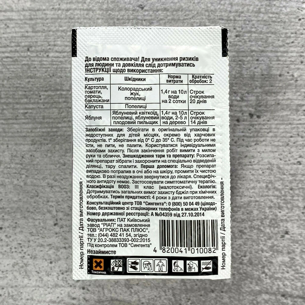 Картопля, томати, баклажани, перець солодкий (колорадський жук), капуста (попелиці) — 0,06–0,08 кг/га.