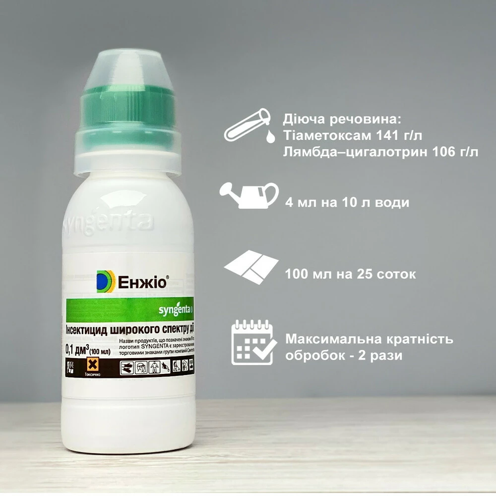 ЗЕОН–ТЕХНОЛОГІЯПрепаративну форму Енжіо® виготовлено за Зеон–технологією. Це концентрат мікрокапсульованої суспензії, яка подовжує дію піретроїдного складника препарату та покращує термостабільність інсектициду загалом, фотостабільність і стійкість до опадів.