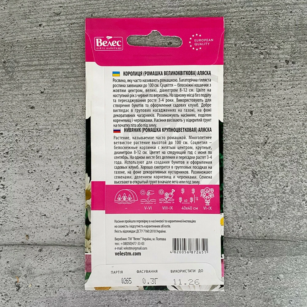 8-12 см, з білосніжними пелюстками та жовтою серединою. Вирощують