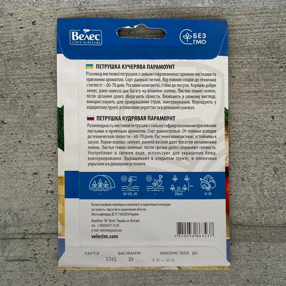 після появи сходів. Рослина з темно-зеленими кучерявими листками і