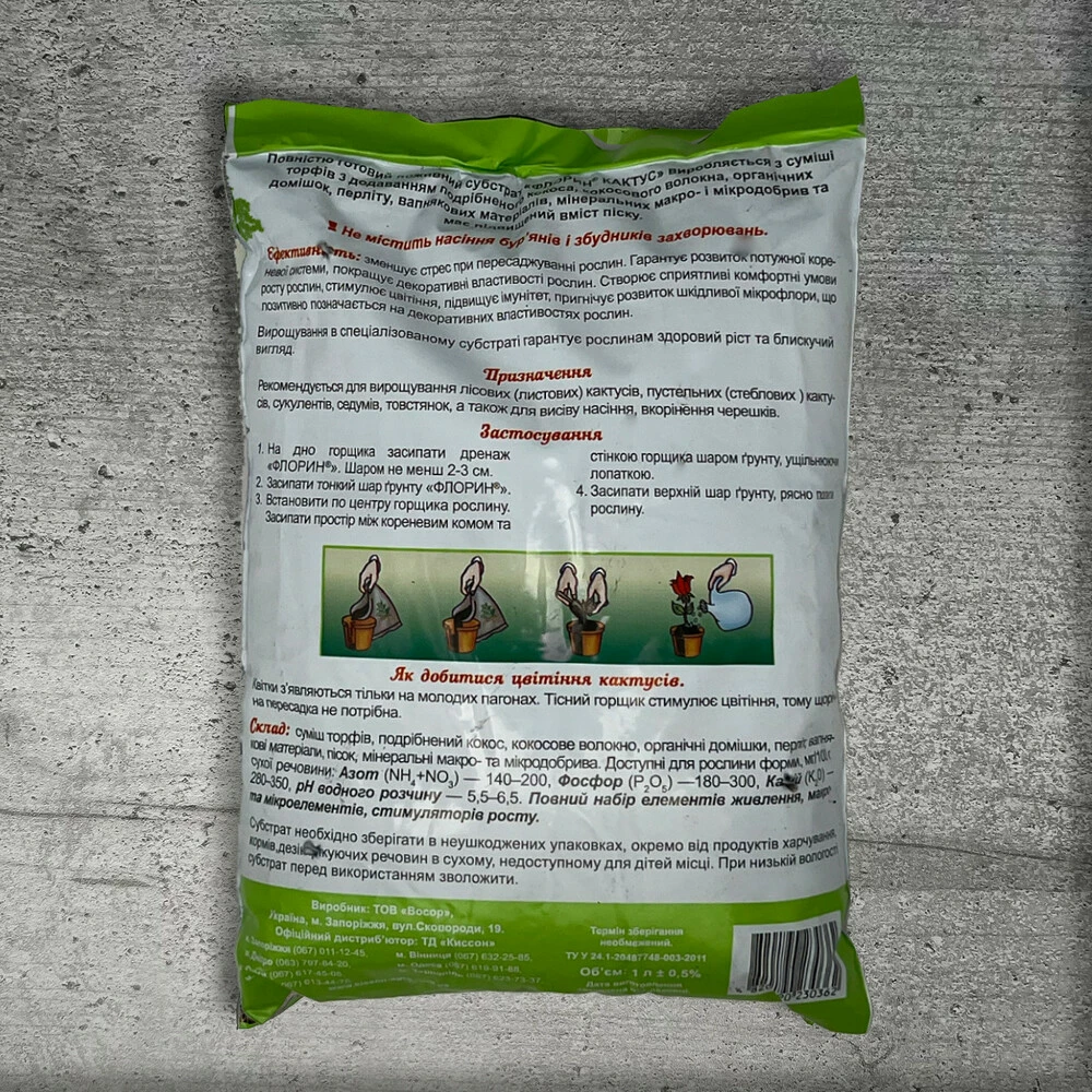- Наповнити ємність субстратом Флорин.